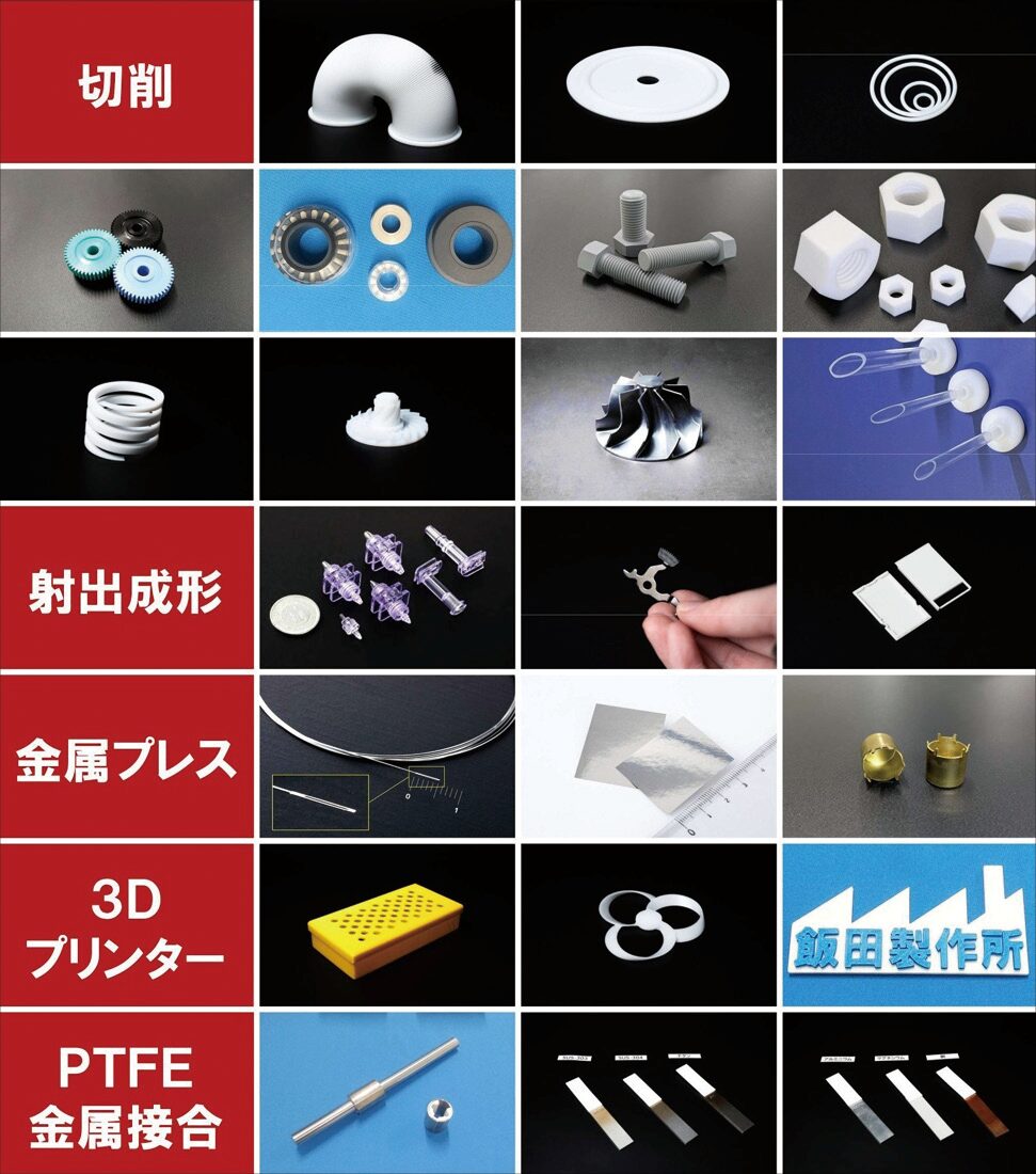 PTFEやPEEK等の精密切削/射出成形/金型設計製作/精密プレス/3Dプリンタ造形