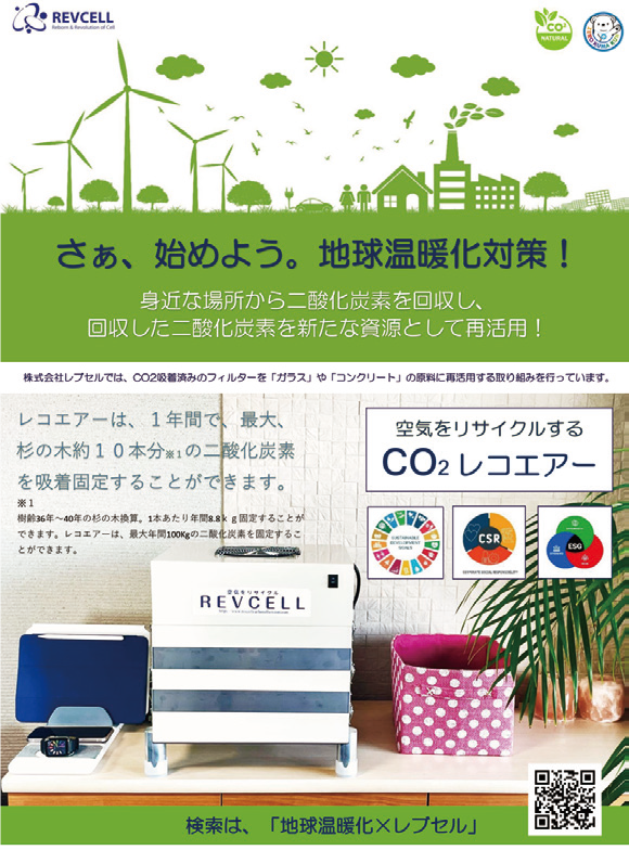 独自開発のCO2吸着剤「レコライム」は、空気と触れさせることで簡単にCO2を吸着固定させます。この技術は、「DAC」=Direct Air Captureと言って、大規模な工場から排出される大量で高濃度なCO2を回収する技術とは異なり、「大気中」=CO2濃度の低い環境でCO2を回収する技術で、自宅や事務所、店舗などの「人が住む環境」=身近な場所でCO2を小型DAC 装置で回収します。