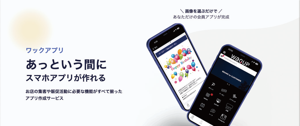 お店独自の会員アプリを簡単に作成できる「ワックアプリ」