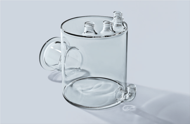 バーナーの炎でガラス管やガラス棒を溶かして加工する技法です。一級技能士をはじめとする熟練の職人のハンドワークとマシンワークによってスピーディーかつ高精度の技術で製作いたします。