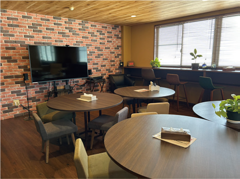 石山ネジでは、社員が快適に働ける環境づくりに 力を入れている。リフレッシュや栄養補給が気軽にできるようオフィスグリコを設置し、また食堂はカフェテラス風にリフォームしてくつろげる空間を整備した。さらに、業務連絡や相談がスムーズに行えるようLINE WORKSを導入し、従業員同士の円滑なコミュニケーションを推進している。