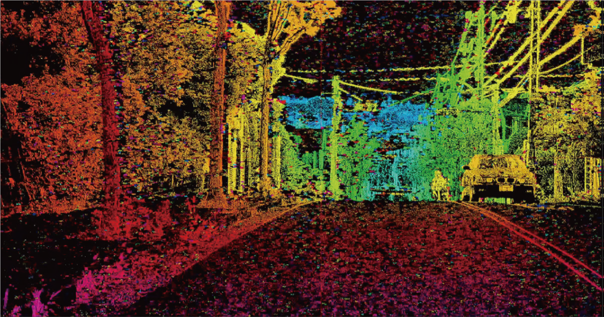 ●空間の距離情報と原画像データ(白黒)を60FPSでカメラ出力し、しかも距離情報と画像データの座標系が正確に一致。