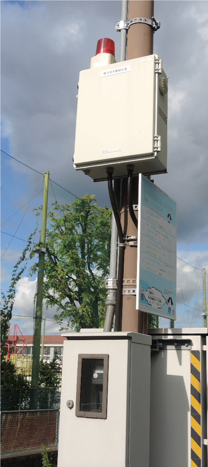 防災事業:河川水位警報ユニット・冠水警報ユニット・浸水警報システム・遊水池警報ユニット・気象情報連動システム・XRAIN雨量警報装置・防災用Eメール転送サービス・警報カメラ運用システム・漏水検知器